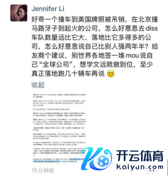 小马智行集中创始东谈主、CTO楼天城在剿袭腾讯汽车采访时示意,从领域化和无东谈主化两个法度看,除了“牌桌”上的Waymo、小马智行和百度这三家公司,其他公司莫得达到这三家公司两年半前的状态,差距还是落伍两年半期间了。文远知行CFO李璇在微信一又友圈公开叛逆楼天城,列举小马智行万般运营问题,并直言:“思学文远就作念到位,至少确切落地跑几十辆车再说!”