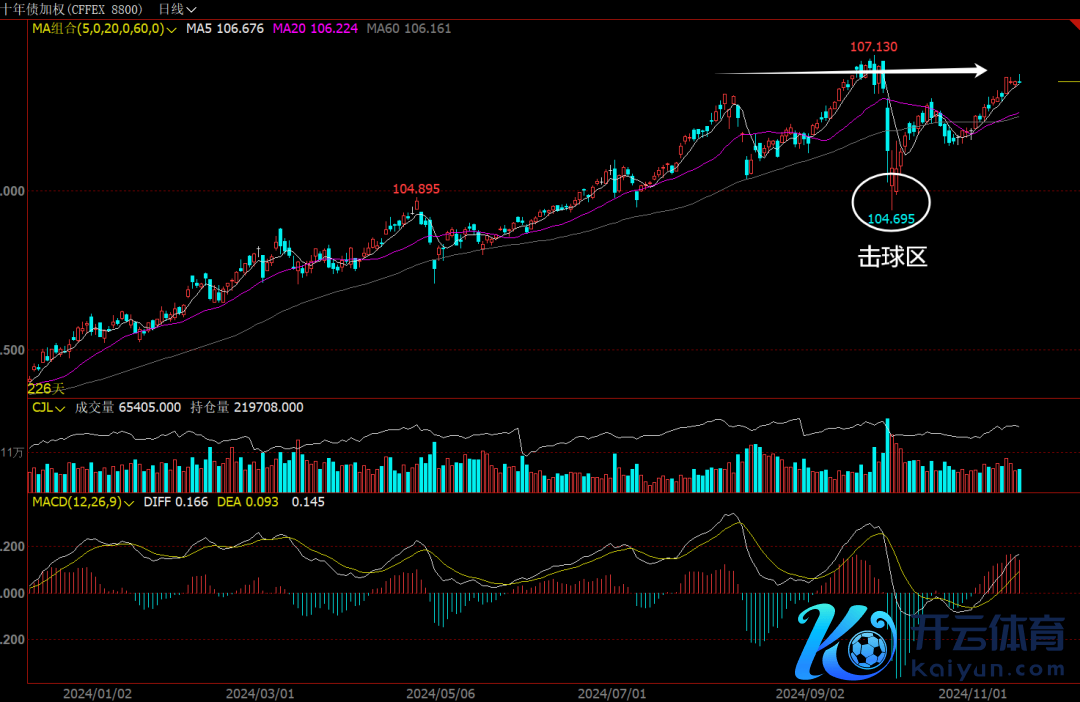 一个多月时分,10年期国债期货(加权)照旧从最低跌破105整数关隘,涉及104.695点;站稳106的整数关隘,最高涉及106.820。