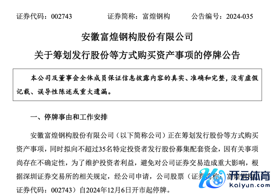 12月5日晚,富煌钢构(002743)公告称,公司拟以刊行股份等表情购买中科视界控股权,同期拟向不跨越35名特定投资者刊行股份召募配套资金。公司股票自2024年12月6日开市起停牌,预测在不跨越10个往夙昔内败露往复决策。