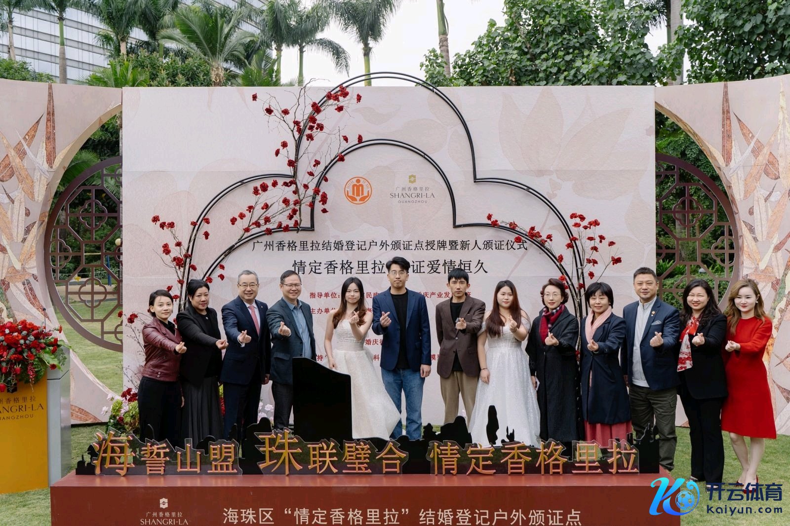 12月12日,海珠区民政局联袂香格里拉栈房举办“香格里拉受室登记户外颁证点”揭牌典礼,并为两对新东谈主举行了猖狂的颁证典礼。此举象征着海珠区又一特质户外颁证点崇拜修复,进一步丰富婚庆文化内涵,提高区域婚配登记作事品性。