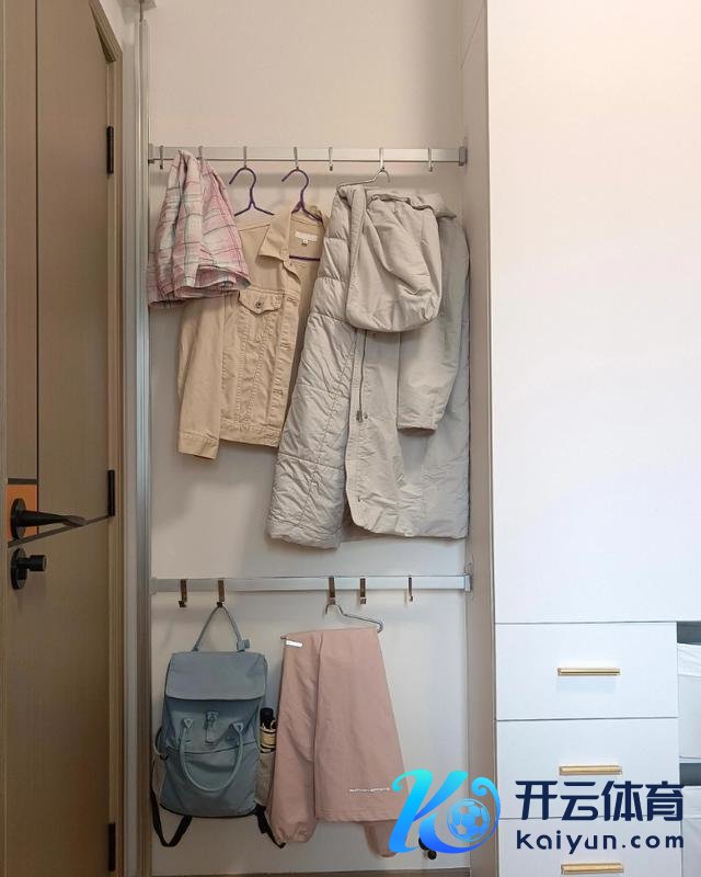将不需要洗的外衣挂在这里,除了不错让收纳愈加整洁以外,还有期骗外衣快速散味透风。