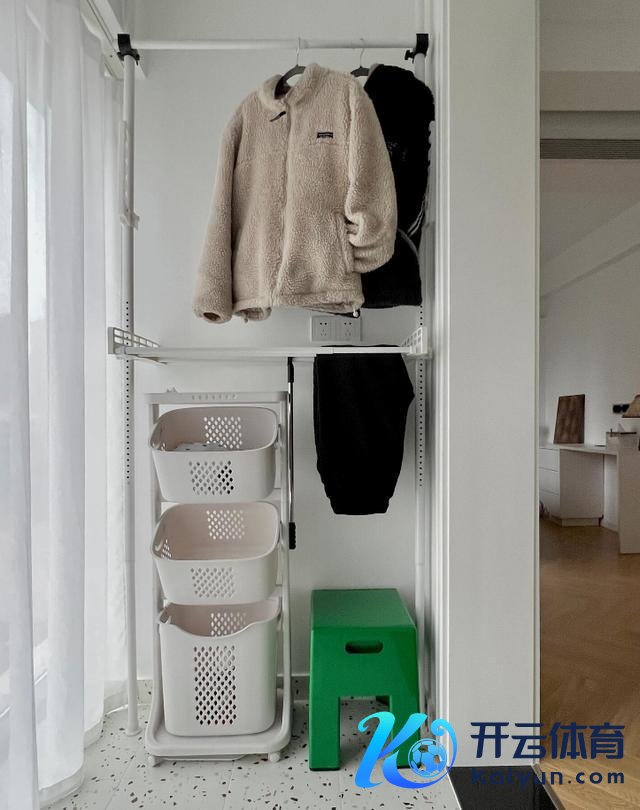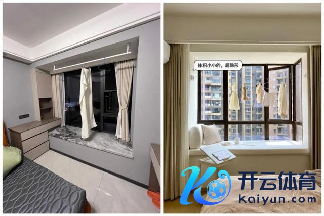 有飘窗的家庭,不错期骗飘窗假想挂衣区。不错径直在飘窗顶上装配挂衣杆,也不错在飘窗一侧装配上隐形晾衣绳。