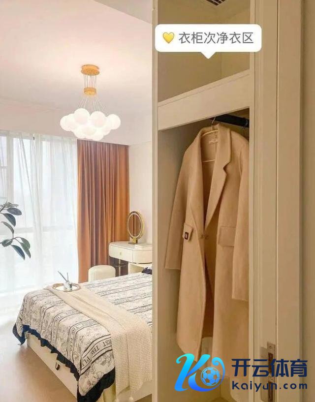 若卧室里的衣柜相比大(床尾柜),统统不错给衣柜作念一块灵通式挂衣区,只须能幽闲基本的隔夜一稔收纳需求就行。