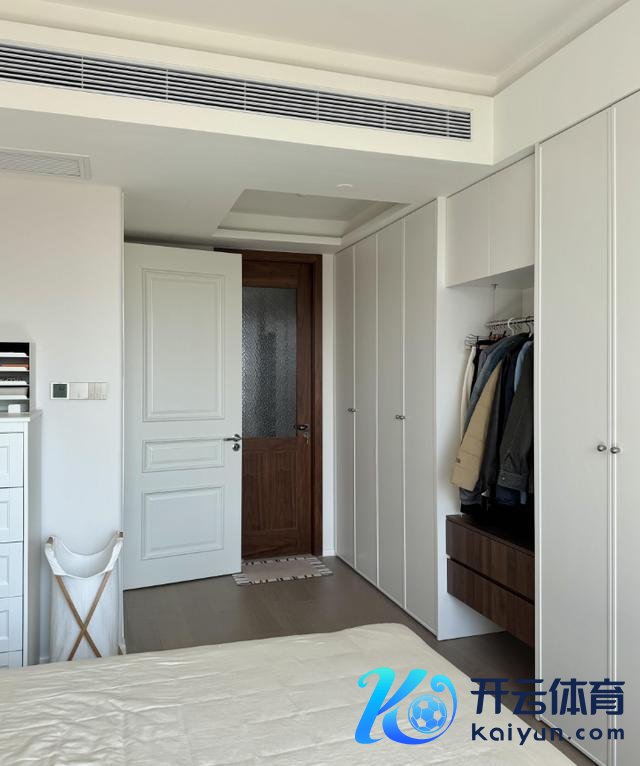下图中的卧室开门就靠近着衣柜,虽说门后只好10cm傍边的深度,但装配上顶天当场衣架后,雷同不错用来挂一稔,以致不会对开门产生任何影响。