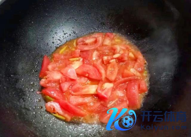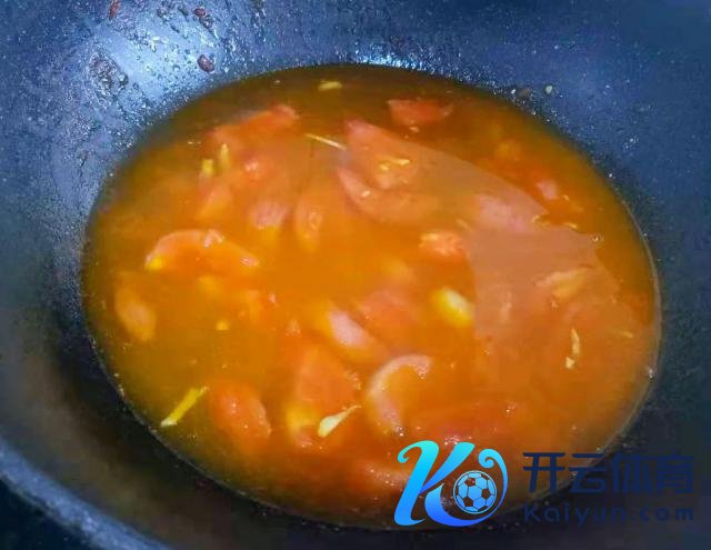 倒入番茄炒出汁。