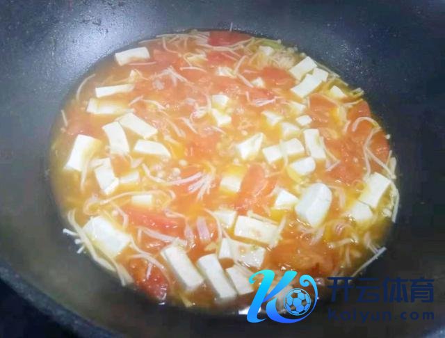 加入金针菇和豆腐,煮两分钟。
