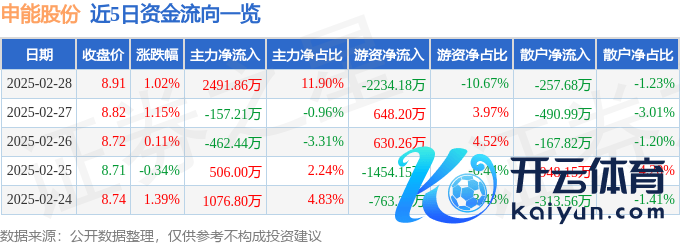 本站音问体育游戏app平台,完了2025年2月28日收盘,申能股份(600642)报收于8.91元,高潮1.02%,换手率0.48%,成交量23.49万手,成交额2.09亿元。