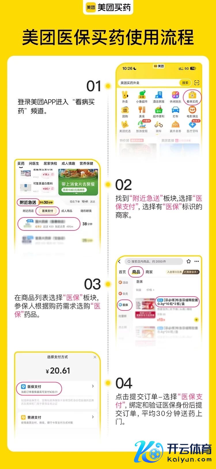 其中,在好意思团平台,参保东说念主插足好意思团App“看病买药”专区,选拔带有“医保”象征的药店和药品,结算时选拔“医保支付”,通过支付宝实名认证神色绑定医保账户,即可享受医保线上购药处事。