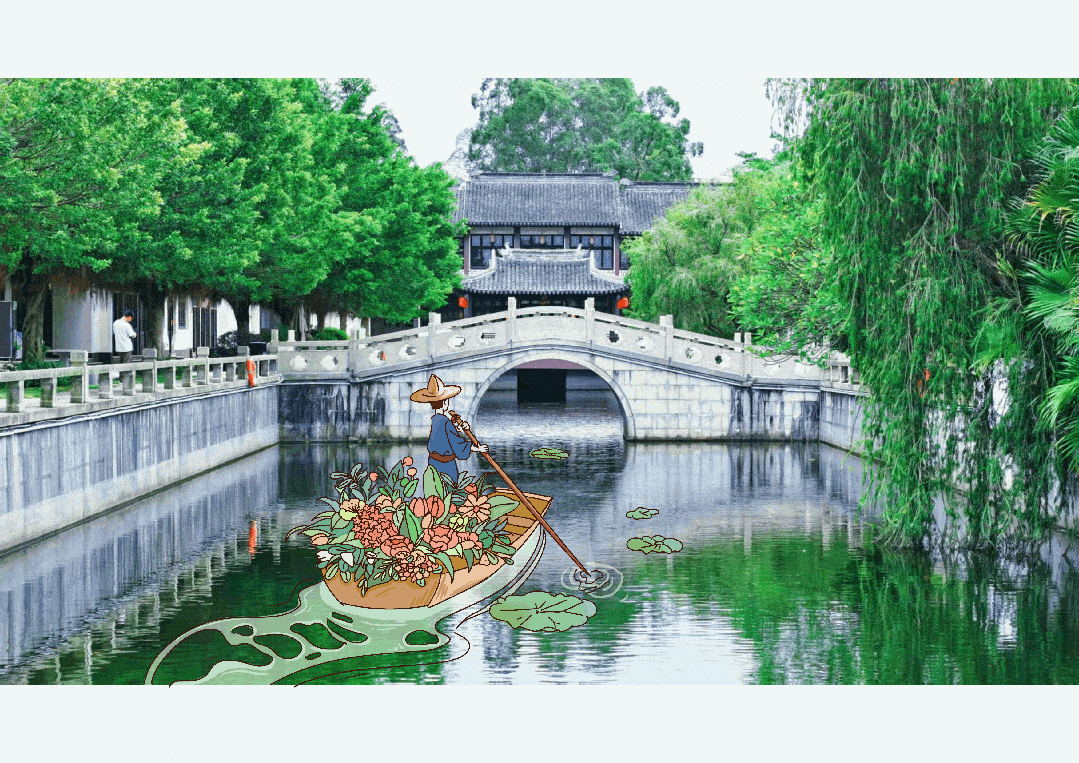 沿着小路来到“水乡一条街”,仿佛穿越到了苏州古典园林的微缩全国。这里限制不大,却韵味所有——灰瓦粉墙、飞檐翘角的开辟沿河而立,玉带桥与彩虹桥轻跨水上,勾画出一幅“小桥活水东谈主家”的诗意画卷。